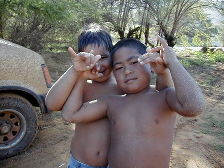 Clifford cleans mud off his pick-up. Mango and Patrick. James and Patrick...all at Cane Top Pavilion.