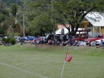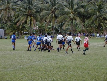 Once I parked my bike to watch the game, a lady with a box of coins and tickets collected $2NZ from me and I walked on down to the field. I'm just going to show a bunch of photos. Rugby is a pretty rough game and better deserves the name "FOOTball" then does the American game. They use their feet and kick a lot more.