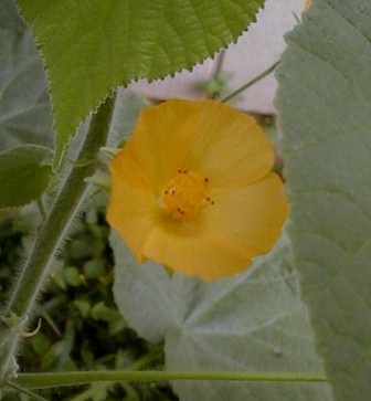 Flower and leaves of the "toilet paper" plant.