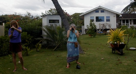 I was planning on finishing Artmail on the 4th and putting it online on the 5th. At 6:30 am on the 4th, the phone rings and it's Lars, my photographer friend from California who is on Kaua'i with his girlfriend, Cheryl, for a two week photographing vacation. His birthday is on the 5th...Cinco de Mayo. He wanted to visit that day and celebrate on his birthday, too. That sounded like a real good idea and my Artmail would have to wait until the 6th. That's today! But today, I'm getting a ride with Tashi to Lihue to buy supplies for the Polivan (tarps and things). I will not finish this Artmail today.