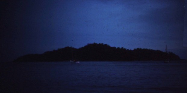 One night, two Australian yachts anchored in the bay off from our hut. We partied a while with them that night. The yachts were gone in the morning. You can see them in this night photo: