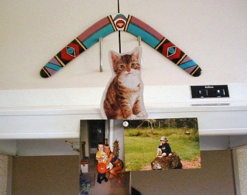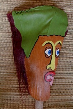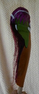 PFP 10 is just one of the palm frond faces that will be used to sponsor boomerangart.com. I have the option of accepting a direct offer "that I cannot refuse" from someone who wants to provide PFP 10 with a home. Even though I no longer have a particular PFP, it will still figure into the growing Purple Feather People Family and its continuing story. The owner may name the PFP and add to or update its story on the PFP's web page on my website or make a website of its own. Who knows where this thing is going? It is part of a living creation in both cyberspace and earthspace. I'm having fun with it and will continue to do so.