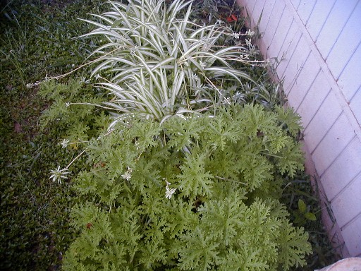 The Spider Plants (and a Coleus volunteer in the upper right).