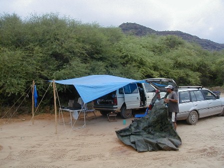 Kirk and I put up temporary rain shelters.