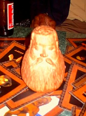John and I talked story a while about art and other interests. He told me that he just started a wood carving and brought it out . The camera's flash didn't help the only photo I took of it.