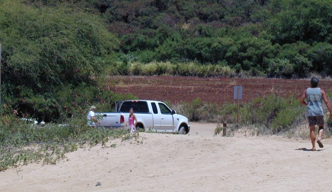Every day some tourists who are inexperienced in driving on sand get stuck and need help getting out. Ilde went to rescue a honeymooning couple from Boston with Tom's pickup.