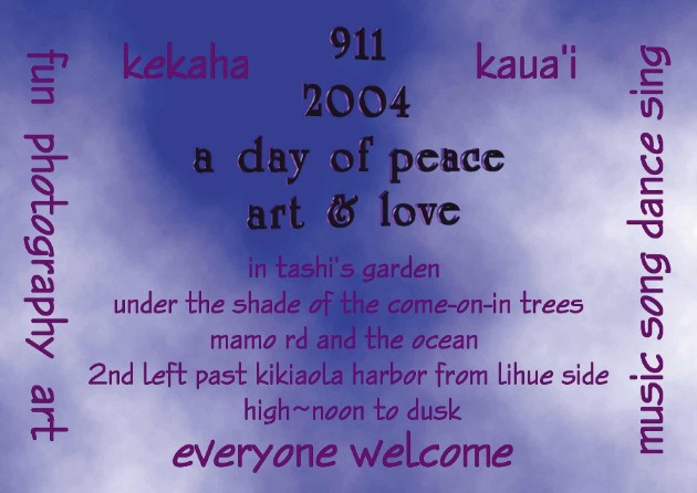 From past Artmails, you can get an idea of what Tashi's garden looked like up to now. It's going to be something else on 9-11. Two artist friends are having a show at the Kaua'i Museum during September: