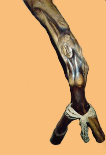 I have some more photos, but this is enough of the Art & Soul grand opening. The wood sculpture is by Kolo Kai. Here is a photo of him preparing her for the opening at Tumu Nu and two earlier photos:
