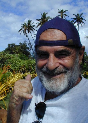 After he put his bags by his couch, I drove him in my "new" 1985 Toyota Tercel to the post office and to Thrifty Mart to pick up some Ahi Poke and beer. Instead of driving back to 15B, I drove us up to the first Waimea Canyon lookout. Then down to Waimea by the other road then to the Waimea swinging bridge and the Menehune Ditch. I wasn't thinking when we started we didn't have our cameras! I bought some hamburger and cooked a quick hamburger steak, baked potato and salad kind of an embarrassing way to first feed the man from France.