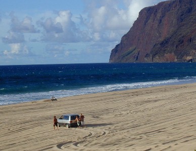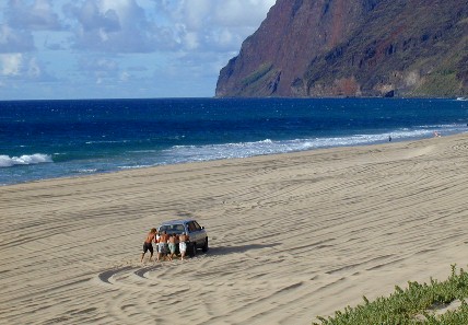 This is the second time at Polihale for Mich. The first time he stayed by Cane Top Pavilion's beach.