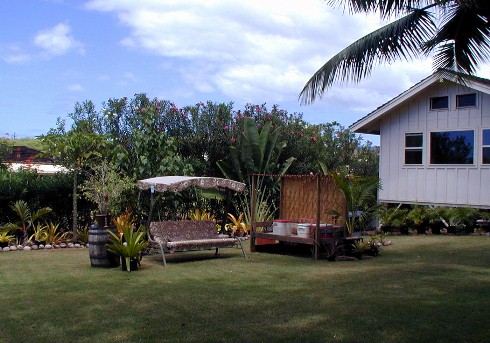 Tau and Tashi put a lot of time and work to get the yard ready for the 911 Art Show. Tau has a lot of his tropical plants making up the landscape. Here are some photos before it started:
