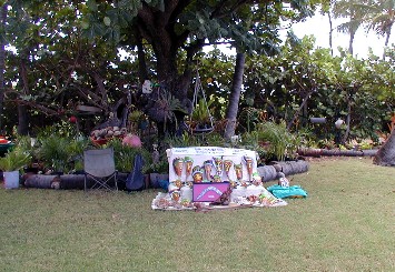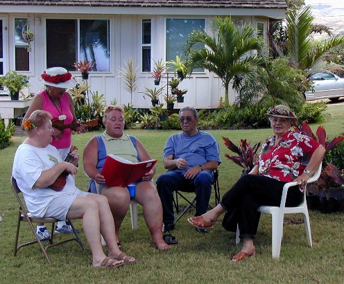 The Kupunas make Polynesian crafts to raise money for scholarships. They also played ukuleles and sang for our pleasure.