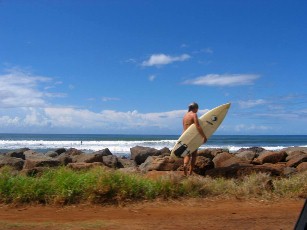 The next day, Mich headed for Po'ipu on the Southshore. The first photo is of Brennecke's Beach which was a bodysurfers paradise until after Hurricane Iwa in 1982.