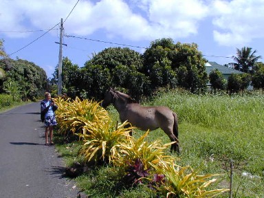 We rode on the 1000 year old Ara Metua. The Ara Metua was ordered built around the island out of coral blocks about 1000 years ago by a famous chief, Toi. Rarotonga is the only Polynesian island with such a structure. When I rode on it in 1985, some parts were covered with soil...the rest has asphalt...now all asphalt.