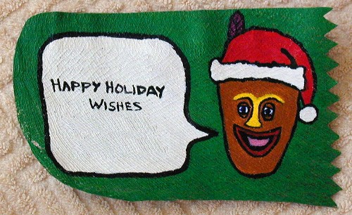 But, that took more time than it would be worth to try to sell them. I noticed the cocopalm fibers every time I went into my closet. Last week, I decided that I would make some kind of Holiday greeting using the PFPs (Purple Feather People) design.