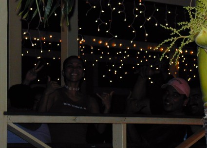 Kaimana sees us and gives a shaka...................................There are a lot of welcome shakas.