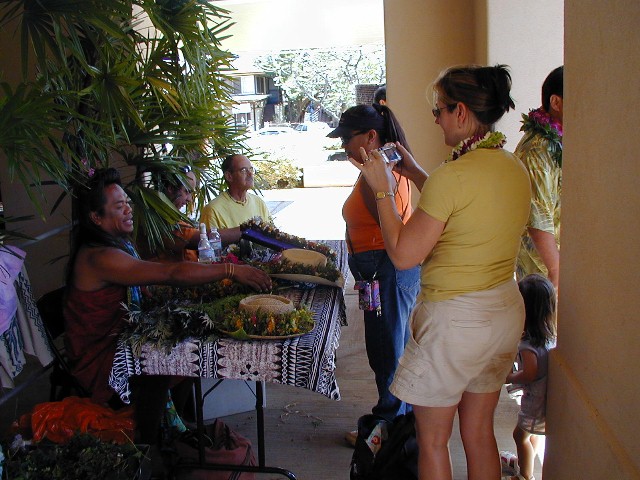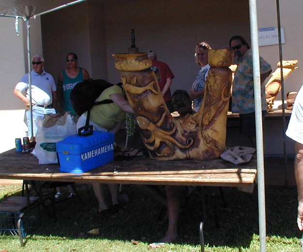 Clifford Apo (on the right) and his art. You've seen him at Polihale.