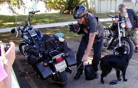 So, I was happy to have her father and her "sometimes nanny," Pirate Ray, come to give me the news of the combined event. This is the first time they had been at 15B. Wally had his dog, "Bear," who rides on the back of his Harley. Anyway, here are some photos:
