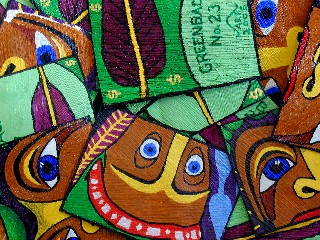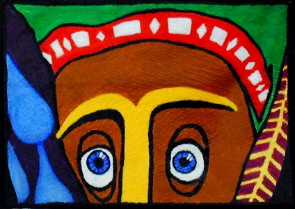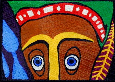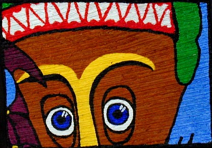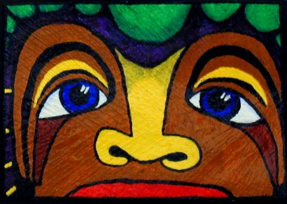 Greenbacks No. 1 through 20 will comprise one series, the Ohana Series. When it is completed, I will have a drawing for the winner of a Purple Feather Person palm frond face. This is my own thing for friends and family...Ohana. Here is a shot of Betsi with her birthday Greenback:
