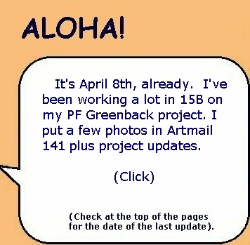 I've been spending a lot of time in 15B working on my PF Greenback project. It sure is nice realizing that if I want to take a beach-break, it's just a short walk. Today, I'll take the bus to Lihue (about 30 miles away) and buy some supplies including cans of acrylic clear for the Greenbacks. It's a scenic ride, of course.