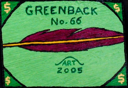 The 24 Series will have twenty Greenbacks No. 46 through 65. It features PFP 24 and the winner of the drawing to be held after all are sold will have a choice of the remaining PFPs in the above group. I will paint Greenbacks No. 46 and 47 to get ready for sales. When No. 46 sells, I will paint No. 48...etc.