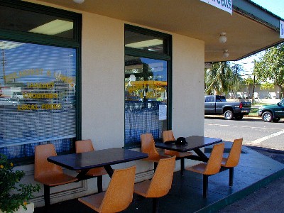 Last Wednesday, Tashi and I did make our Koke'e trip to take some photos. We started in Kekaha then drove three miles into Waimea for a quick breakfast. The place we had planned to eat was full, so we went to the Waimea Bakery & Deli across from the Captain Cook Monument park where we could sit outside.