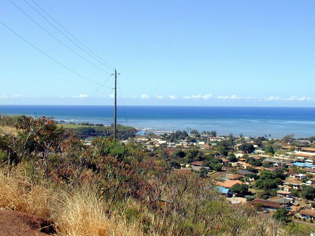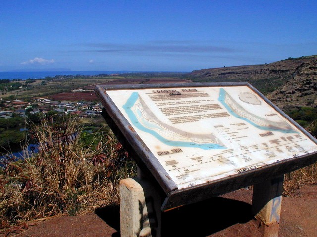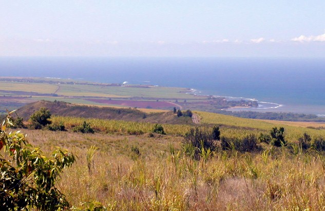 Olokele Sugar Mill in the distance, Pakala's surfing place at the right.