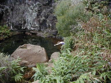 The small upper Waipo'o Falls and pool.