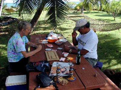 I am an artist of sorts, but not an artist who "paints pictures," usually. The whole bevy of projects that I am working on during my retirement, my art, is meant to productively fill my leisure time during the journey through my senior years. I started painting Polihale Palm Frond Faces in 1995. In 2002, I started the first of the Purple Feather People palm fronds using colors directly from the tubes so that I would not have to mix paints to get the desired colors when starting another painting session. I have over 25 PFP's keeping me company in 15B with their silly cartoon eyes. My plans are to finance my photo-taking travels with my artwork using materials from coconut palms from the westside of Kauai.