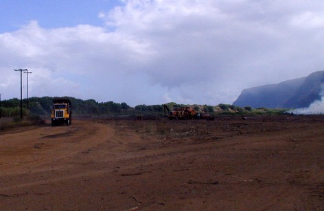 The road has been graded..............................................Sugar cane is being burned for the last time.