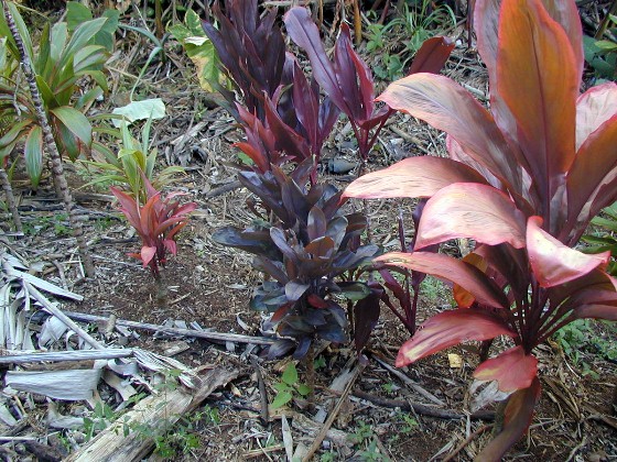 Several varities of ti-plants...ki. .....Black ti is in the middle.