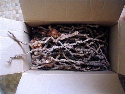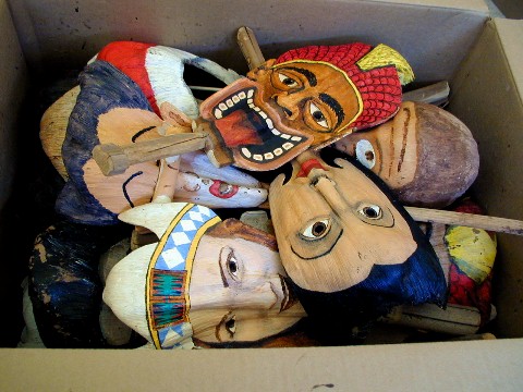 Old palm frond faces and masks back in the box.