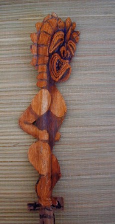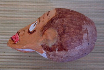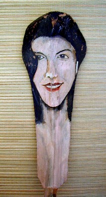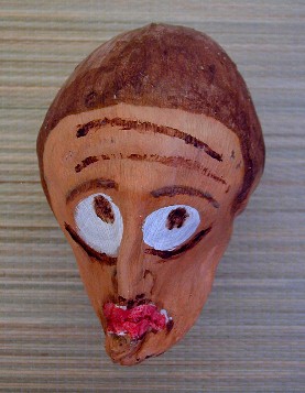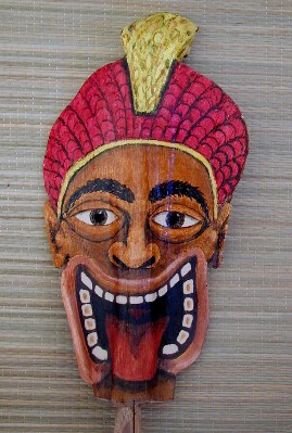 Here's the first mask I painted using a palm frond base from the coconut tree at 9C. It was done before I learned how to properly prepare the palm frond for painting. The palm frond bases from Polihale are much better to use because they are not so thick and dry out a lot thinner and lighter.
