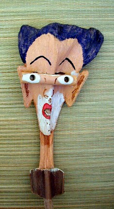 This page isn't about boomerangs...it's about palm frond faces. I had already decided to toss the cocopalm flower parts that I used to make "spikey-headed" palm frond faces: