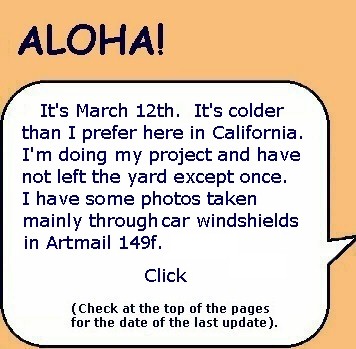 I'm in Ojai, California going through my past as I photograph and toss most of what I had stored here. It is colder here during the "warmest" part of the day than the coldest temperatures on Kaua'i. Brrrrrrrrr! I'm spoiled. Anyway, I haven't been out of the house except once to go to the post office. So far, I've taken about 2000 photos, but none for this Artmail except for that 7th-grader's photo above.