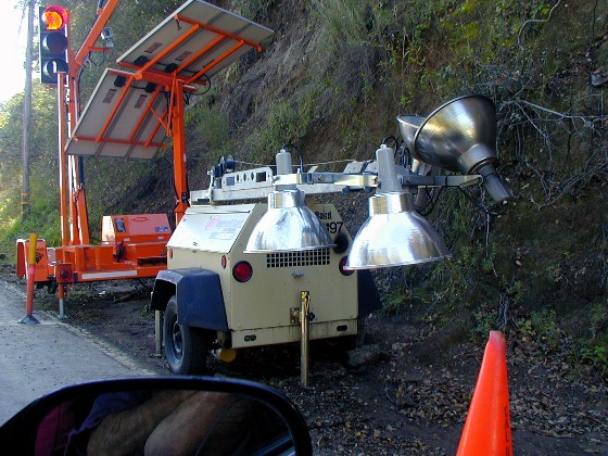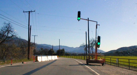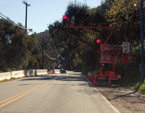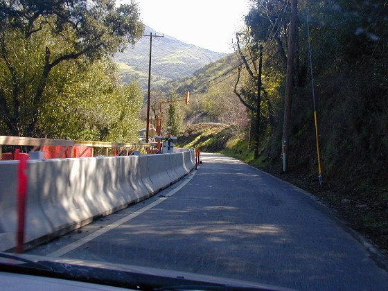 The erosion and slides from the heavy rains of last year closed off the four main roads to the Ojai Valley. Highway 150 has one-lane sections regulated with automatic 2-minute stop lights...