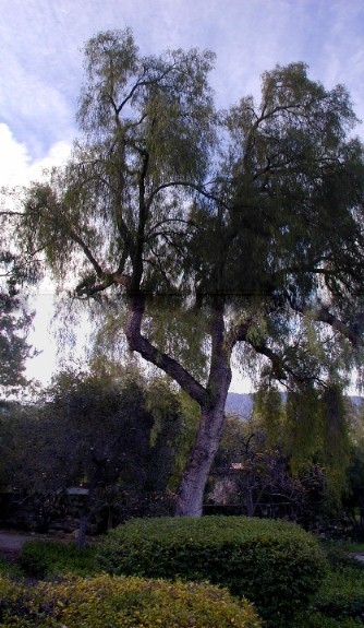 Quickly-stitched photo of the pepper tree from the deck............................................................................