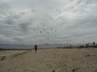 After arriving on the mainland and staying at Scott's place that night, we went to the beach near the entrance to the Ventura Marina. It wasn't exactly beach weather...