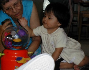 ........................"Psssst...Watch this."......."Hey Gramma, look....somebody is trying to take my paper."