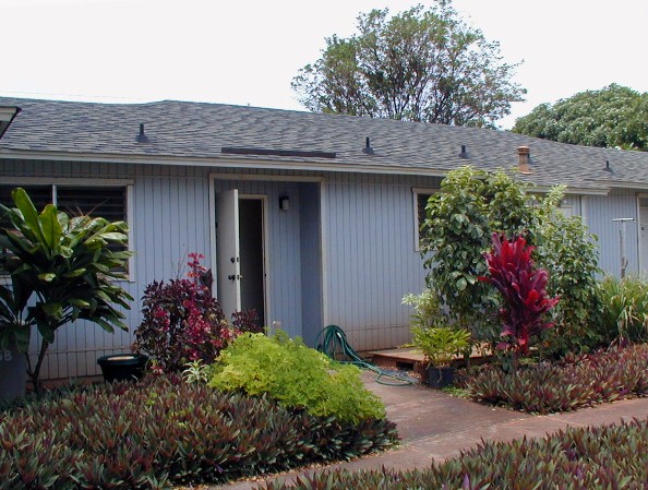 Later, a lauhala mat will be attached to the plyboard that can be leaned under the eaves if it rains.