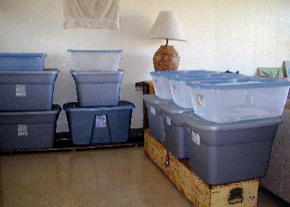 Plastic storage boxes waiting on May 5th.