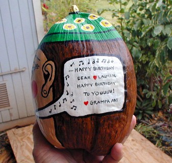 That coconut at the right is going to become granddaughter Lauren's five years-old birthday present.