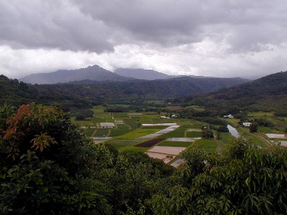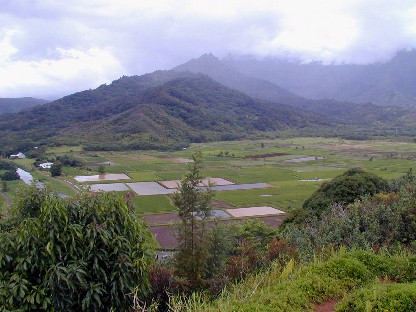 We headed for Hanalei with some look-see spots on the way such as my former living places at the end of Anini Road and two in Princeville. We checked out the Hanalei Valley and Taro Ponds lookout for a photo or few: