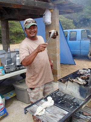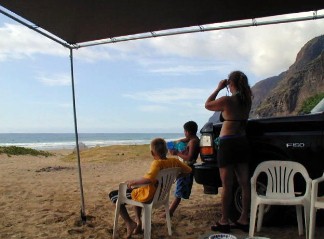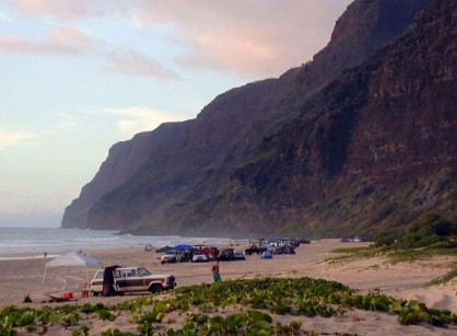 May 27th of the Memorial Day Weekend at Polihale...TTashi and I took a ride out to Polihale. I needed some Polihale sand for my wedding present and I wanted to check out the graded cane road. The road to Polihale is the smoothest it's been for a long time. The cane road and the park roads had been graded all the way to the farthest-in pavilion. I was able to even drive the Tercel to it...