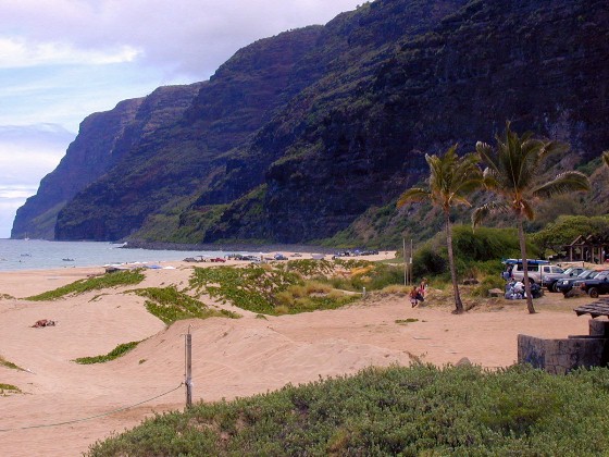 This and the following three photos show the highway next to Kekaha Beach from Kekaha Park to the Lifeguard Tower.