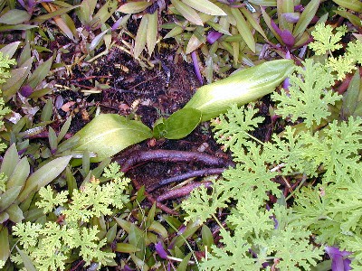 A different view of my little outside room on the 6th...........................A Ti plant starting across the walk from the red one.