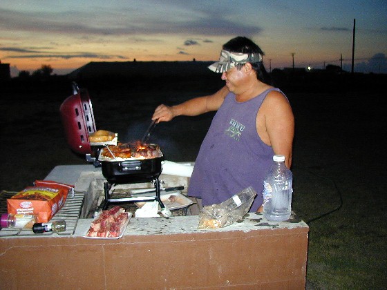 Parnell was the chef and cooked the grinds...It was ono...That's a marlin sausage, flavored with Portugese sausage flavoring, but the meat is marlin and it is packed in deer intestine. It was a real surprise...very good.