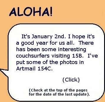 Winter is the time many couchsurfers want to surf a couch in Hawaii, it seems. I had decided that I would limit hosting at 15B to once a month. Several couchsurfers were looking for couches during the holidays and I had more requests than I could handle. I think Kekaha Ha'aheo 15B will become a CouchStation (for later). I can give information and share some of the camping supplies available at 15B. (Here's an information page that I made for couchsurfers visiting Kaua'i).