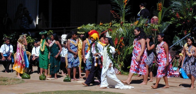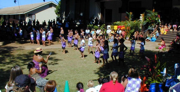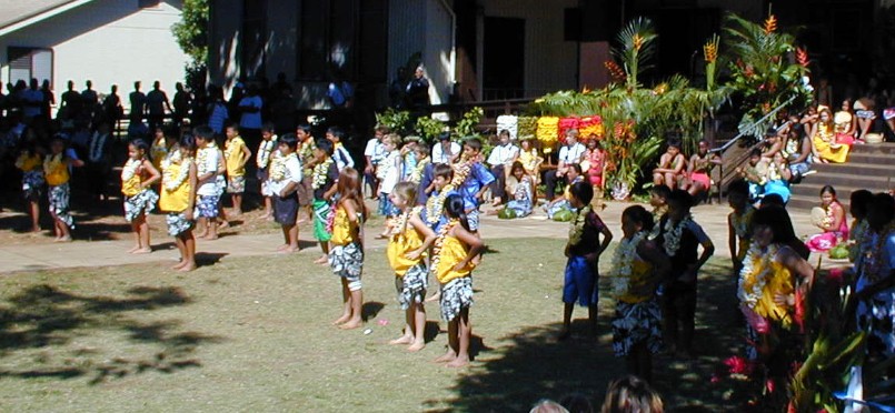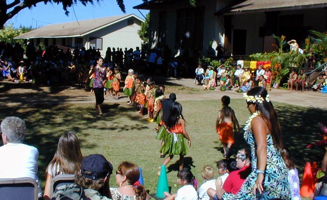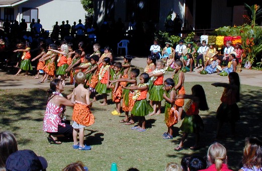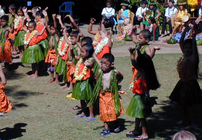 Next, the kindergartners...to do their hula dance...