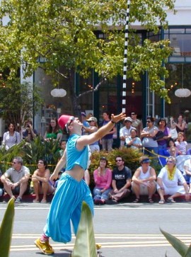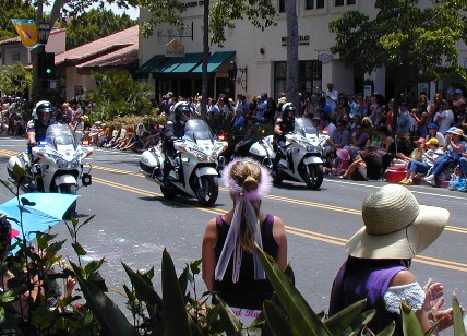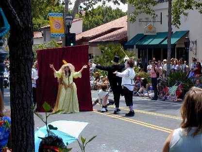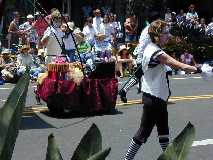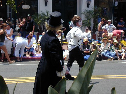 The parade happened on Saturday. I snapped a lot of photos through the windshield while driving to Santa Barbara the back way on scenic Highway 192, then walking through Alameda Park, where the festival was held, and then walking down State Street to where I was able to stand in the shade and shoot photos of the parade. These photos start with the leaders of the parade...the magic of the mimes...
